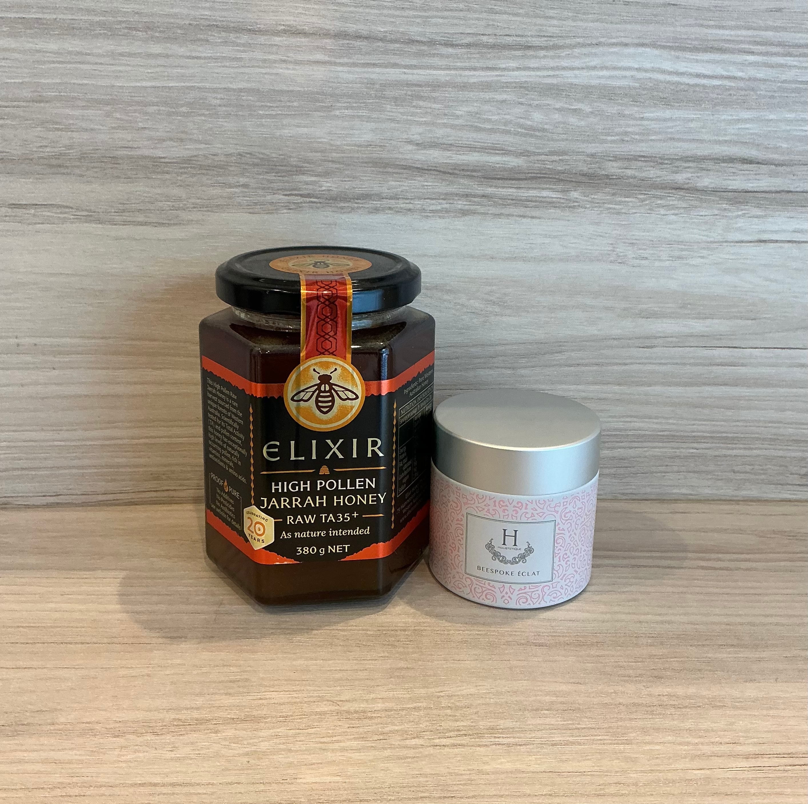 High Pollen Jarrah Honey380g(賞味期限4月7日)1個とビーズポーククレイ(蜂蜜クレイパック:定価5800円)1個がお得なセットになりました。